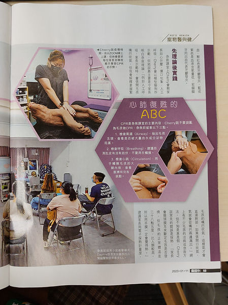 Cherry在課堂上亦會教導家長日常怎樣觀察毛孩的身體狀況,「早期發現身體出現問題,救活率會更高,亦不需要「衝急症」,因為急救的救活成功率其實不太高。」Cherry提到家長可檢查毛孩牙肉,若狗狗的牙肉呈粉紅色代表貧血、鮮紅色是牙齦發炎、藍或紫色是血液含氧量低,若貓貓牙肉出血代表牙齦發炎。